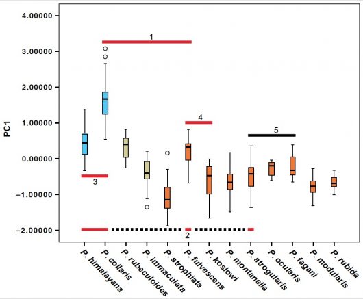 Explosive radiation and spatial expansion across the cold environments of the Old World in an avian family. Liu, B., Alström, P., Olsson, U., Fjeldså, J., Quan, Q., Roselaar, C.S., Saitoh, T., Yao, C.-t., Hao, Y., Wang, W., Qu, Y. & Lei, F. 2017. Ecology and Evolution. 7: 6346–6357. DOI: 10.1002/ece3.3136. VIEW