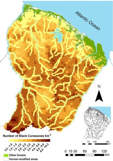 Black Curassow habitat relationships in terra firme forests of the Guiana Shield: A multiscale approach. 2016. Denis T, Hérault B., Jaouen G., Brunaux O., Guitet S. & Richard-Hansen C. The Condor : ornithological applications. DOI: 10.1650/CONDOR-15-28.1 VIEW
