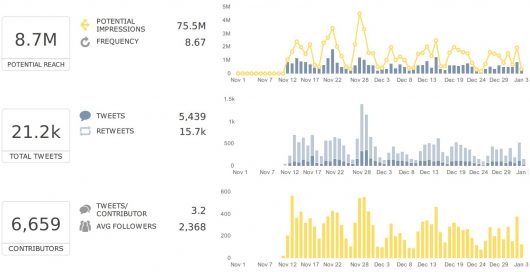 The #ornithology tag on Twitter continues to grow and at the end of 2017 had over 6,500 engaged users/contributors (Fig. 2) reaching up to 4 million accounts a day and a wider reach of over 75 million accounts per month.