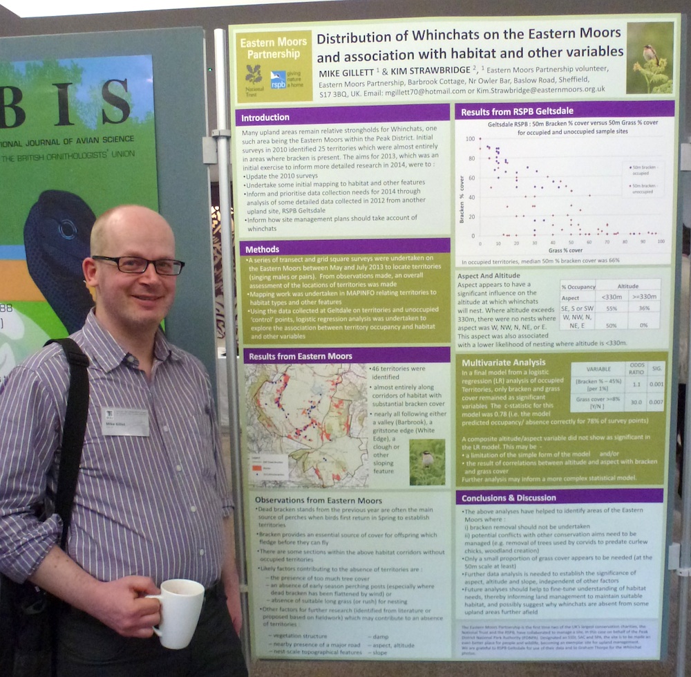 The RSPB’s Mike Gillett presenting his poster ‘Distribution of Whinchats on the Eastern Moors and association with habitat and other variables’.