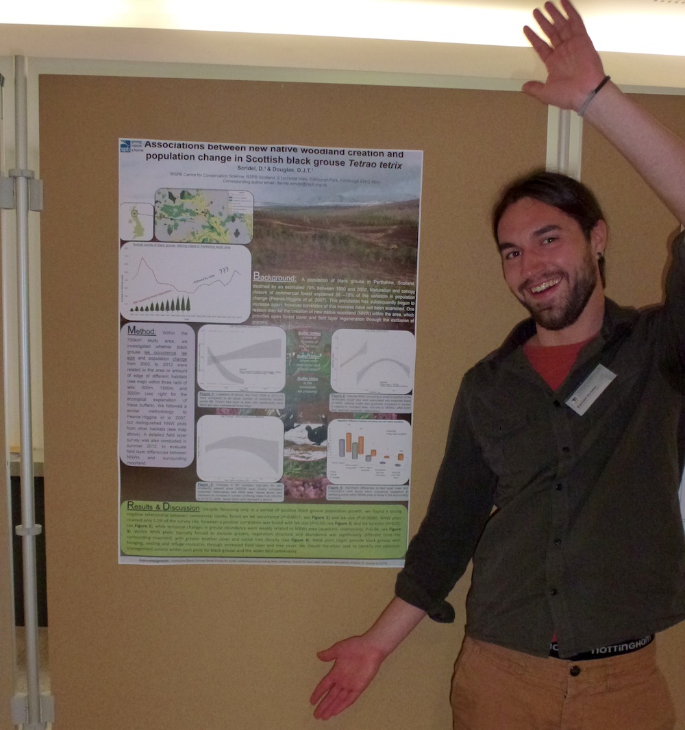 Davide Scridel (RSPB Centre for Conservation Science) presenting ‘Associations between new native woodland creation and population change in Scottish black grouse Tetrao tetrix‘.