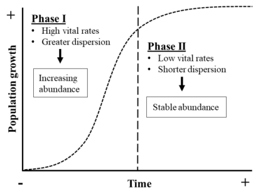Figure 1 Representation of stages 1 and 2 of Island Colonization Strategies of the Theory of Island Biogeography