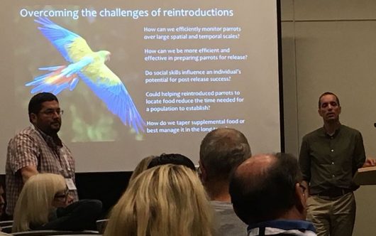 However, as my intention was to make the most of my presence at the conference, in addition to participating with my oral presentation about the threats affecting Neotropical parrots, I organised a workshop on parrot reintroductions with other researchers. The workshop took place during the IOU Psittaciformes Working Group meeting, which was attended by more than 40 people, and for a full day, we discussed about the main aspects related to the reintroduction of parrots in the world.