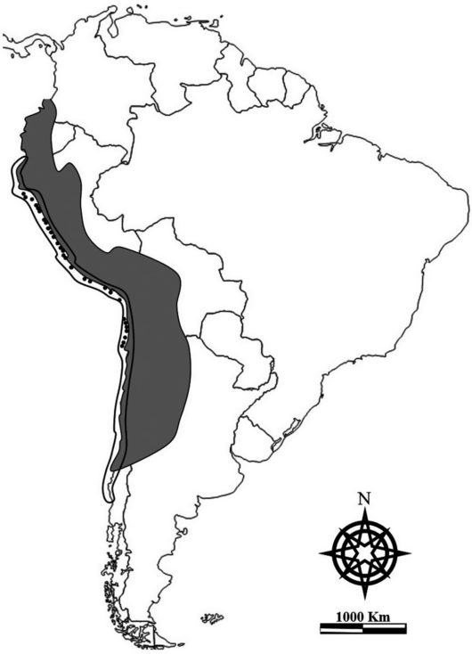 Figure 1 Map of the Inca Empire (grey) with the most important guano deposits (black dots) along the western coast of South America.