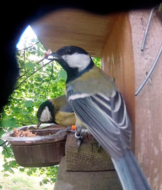 Figure 2 A pair of supplemented urban Great Tits feasting on the provided mealworms. Supplemented parents readily fed their chicks with the extra food in both habitats @ Gábor Seress