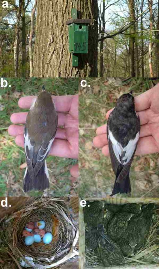Featured image: Pied Flycatcher Ficedula hypoleuca hatchlings in nest © B. Tomotani & I. de la Hera