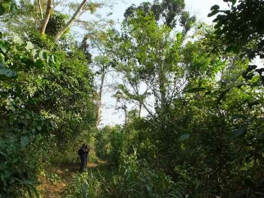 Firstly, by mapping different habitats across the study area and following birds fitted with radio tags, we identified (perhaps not surprisingly) that forest (both open and dense) was the preferred habitat. Secondly, although we had noticed how areas of forest were disappearing while walking around the study site, it still came as quite a surprise when we calculated that over a quarter of the forest had been lost over the course of just three years. Initially cleared or burned, in subsequent years these once-forested areas are then planted with various crops, especially Cassava, or Plantain and Palm plantations. Surely, this level of habitat loss would have an impact on the number of Wood Warblers using the site. Finally, we also conducted monthly surveys using playback of the Wood Warbler’s call and song. Although they are not territorial on the wintering grounds, they respond readily and from quite a distance, which is fortunate as they tend to forage unobtrusively in the canopy of tall trees, making it very difficult to estimate how many birds there are. Although the numbers of birds recorded varied across the season, reflecting the itinerant nature of the Wood Warbler’s migration south through Africa (Mallord et al. 2017b), the numbers were similar in all three years.
